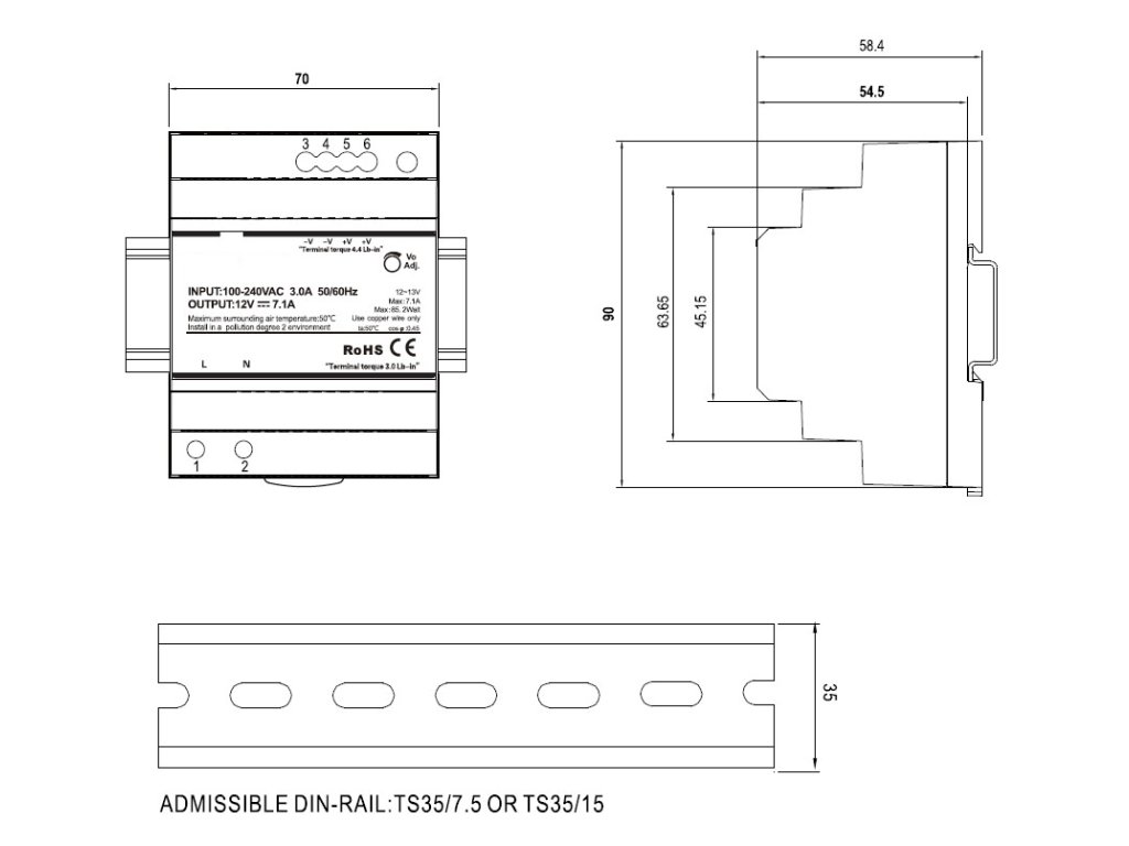 LED zdroj 12V 90W na DIN lištu