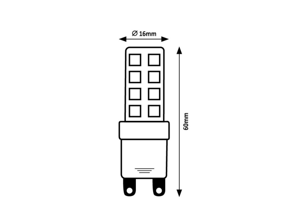 LED žiarovka má výkon 4 W a poskytuje svetelný tok 420 lúmenov. Používa sa často v menších svietidlách, bodovkách, kúpeľňových a nástenných svietidlách, kde je dôležitá kompaktná veľkosť. Vďaka vyžarovaciemu uhlu 360° rovnomerne rozptyľuje svetlo do celého priestoru. Je vybavená päticou G9, ktorú môžete bez problémov použiť vo všetkých bežných svietidlách s touto päticou.
