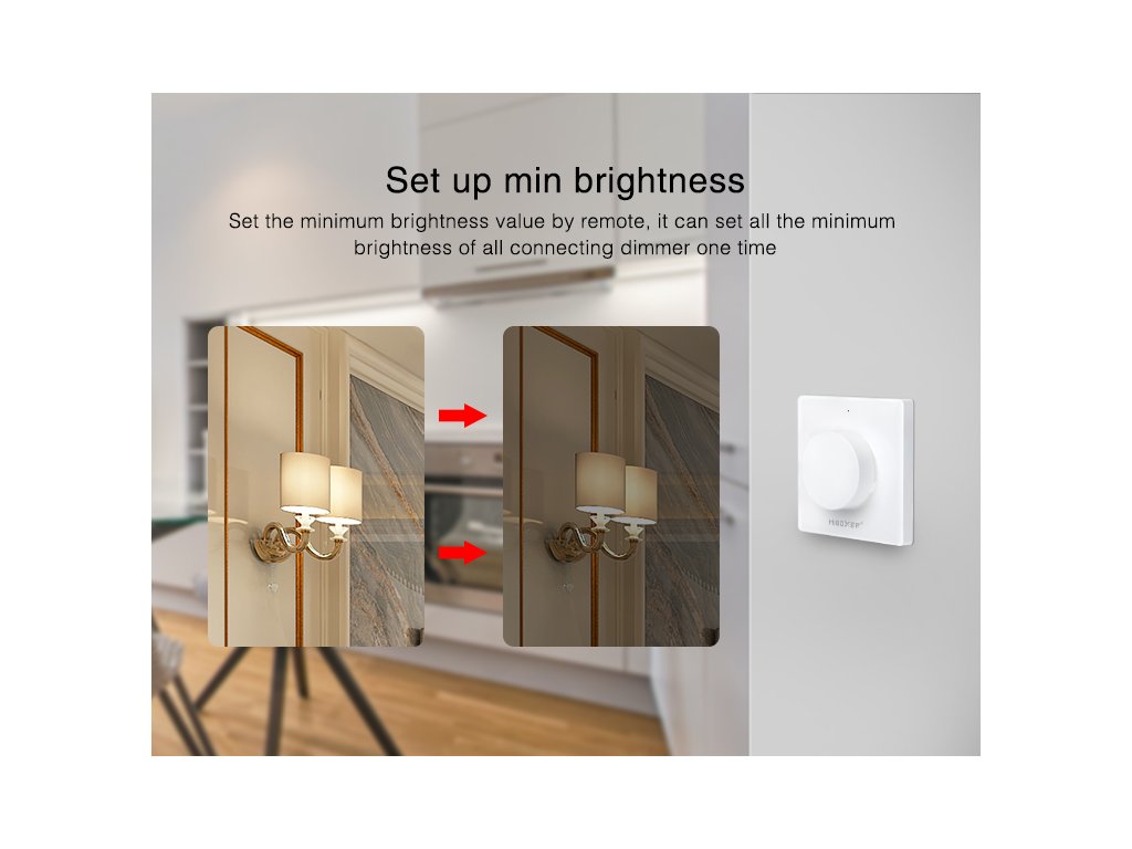 - Možnosť inštalácie do krabice KU68 pod vypínač (stmievanie pomocou vypínača).