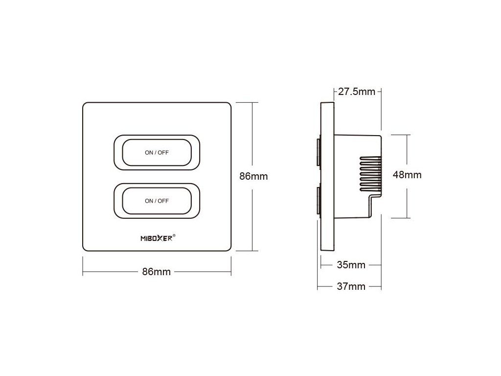 MiBoxer Zigbee + RF nástenný vypínač (2-kanálový) umožňuje nezávislé ovládanie dvoch okruhov osvetlenia alebo iných elektrických zariadení, ako sú ventilátory, zvlhčovače alebo ďalšie spotrebiče napájané 230 V. Kombinuje technológiu Zigbee 3.0 a 2,4 GHz RF, vďaka čomu je vhodný pre klasické inštalácie aj integráciu do inteligentnej domácnosti.