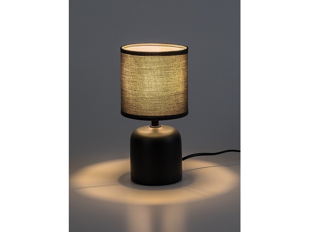 Telo lampičky je vyrobené z modrej keramiky a dopĺňa ho valcové textilné tienidlo, ktoré je otvorené zhora aj zdola. Vďaka tomu svetlo príjemne presvitá a rovnomerne osvetľuje okolitý priestor.