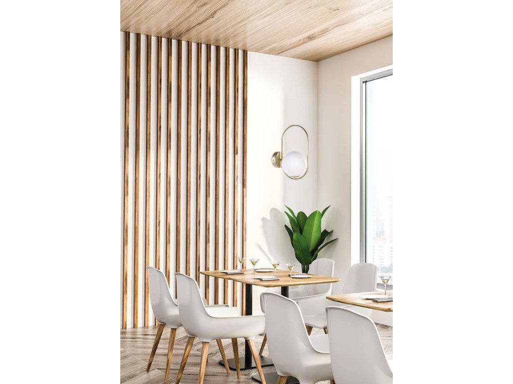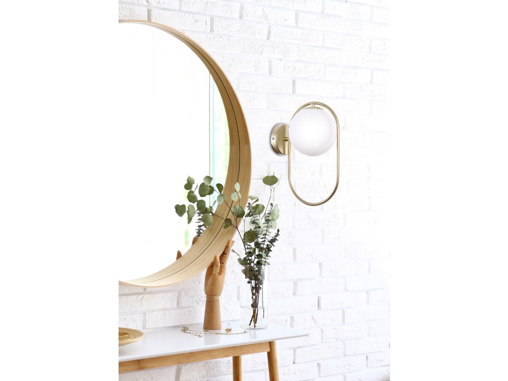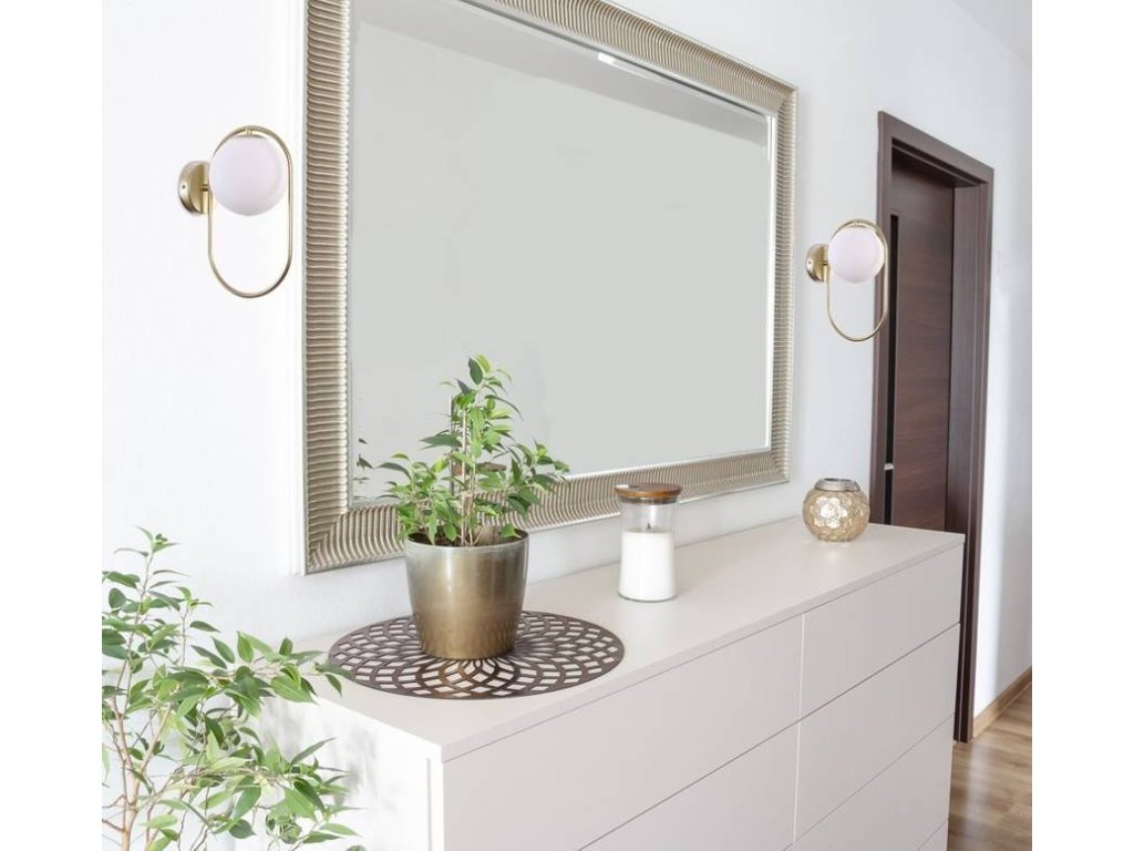 Nástenné LED svietidlo s päticou 1x G9 s výkonem max. 28W. Rozmer tohto svietidla je 320x220x150mm. Jedná sa o elegantný nástenné svietidlo určené do moderného, škandinávskeho alebo minimalistického interiéru. Vytvorí jedinečnú atmosféru v obývacej izbe alebo spálni, ale bude sa skvele vynímať aj v predsieni alebo pracovni. Hlavná konštrukcia je vyrobená z kovu s mosadzným efektom a tienidlo z bieleho mliečneho skla.