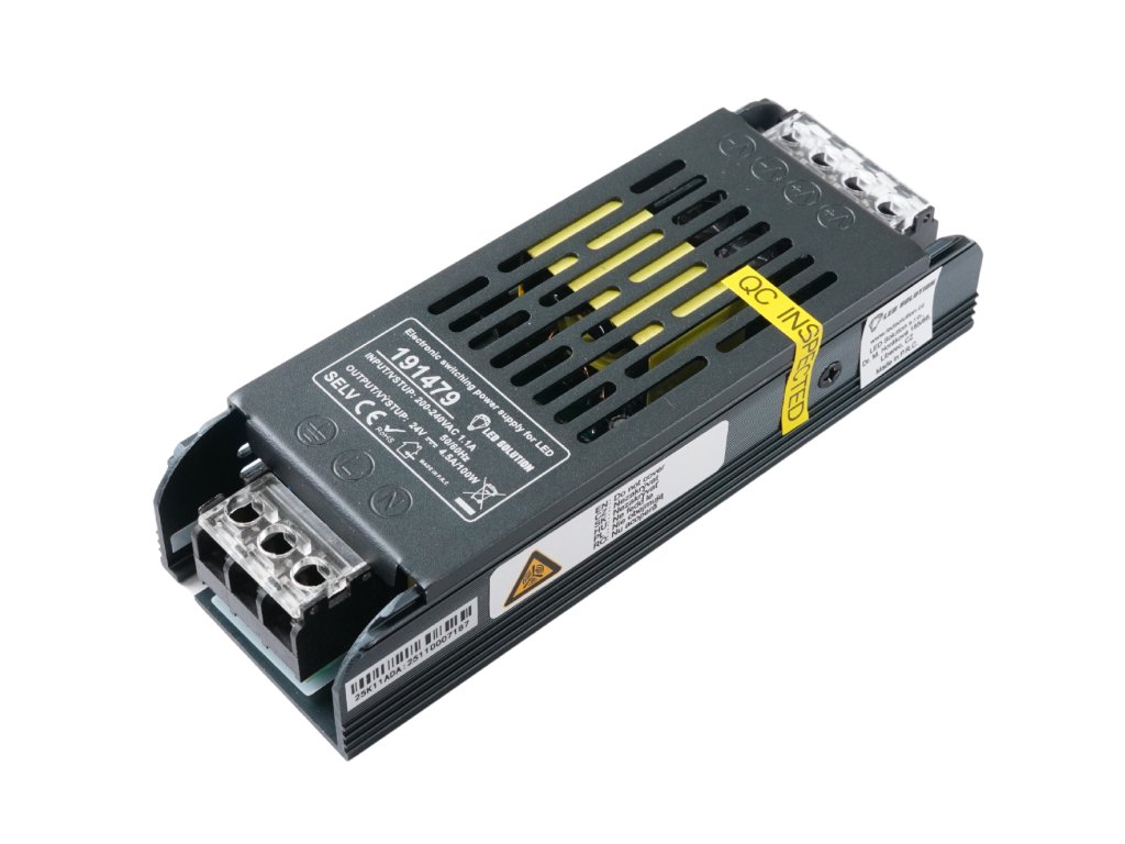 LED elektronický spínaný zdroj (trafo) s výkonom 100W je určený na napájanie nízkonapäťových LED produktov vo vnútorných priestoroch. Vhodný je najmä pre LED pásiky, LED žiarovky a ďalšie LED osvetlenie napájané napätím 24V.