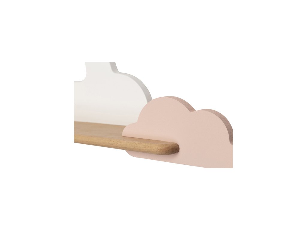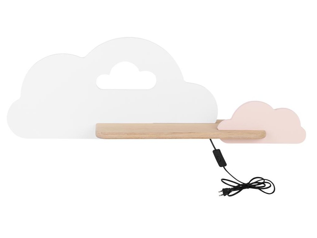 Nástenné svietidlo je vyrobené z dreva s motívom mrakov bielo-ružovej farby, ktoré je doplnené o napájací kábel so spínačom.