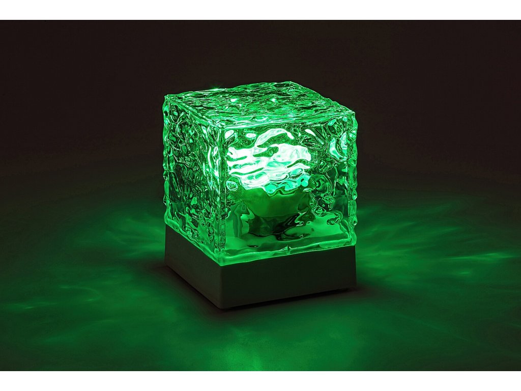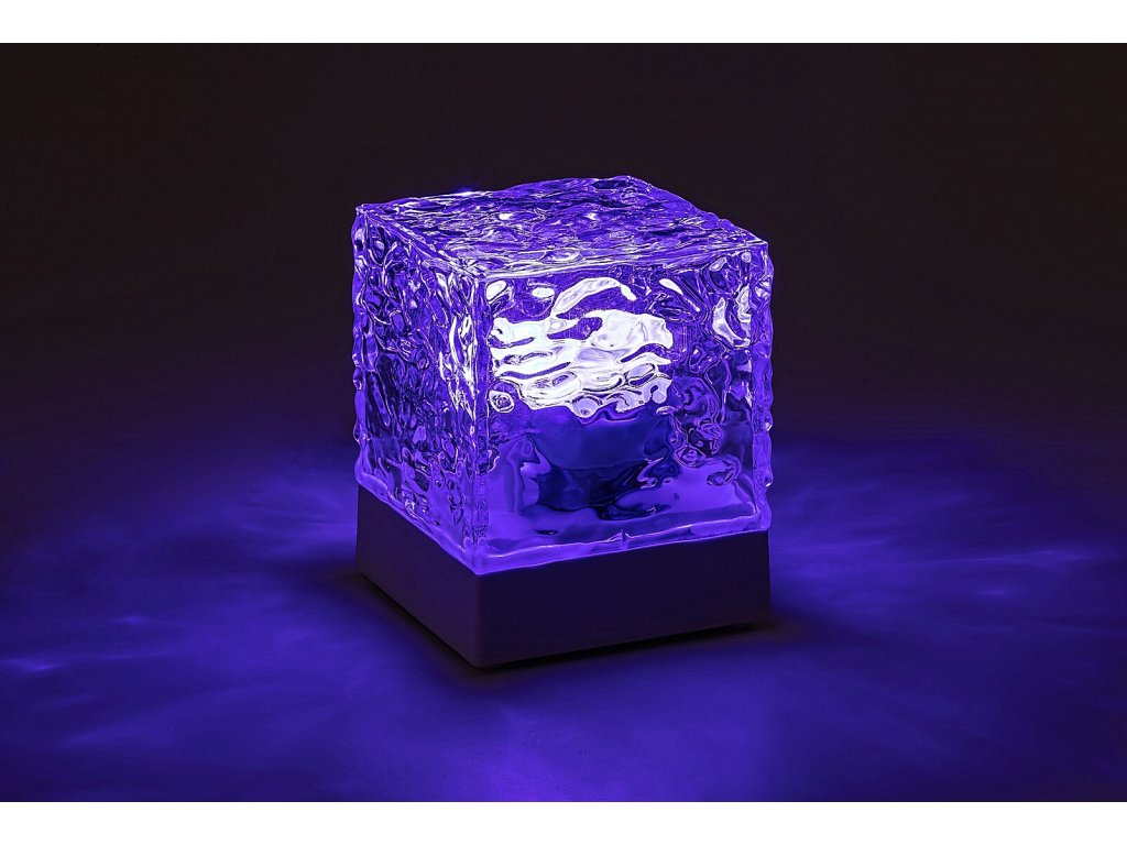 Priehľadná dizajnová LED RGB stolová lampa Cubiko na batérie s DO