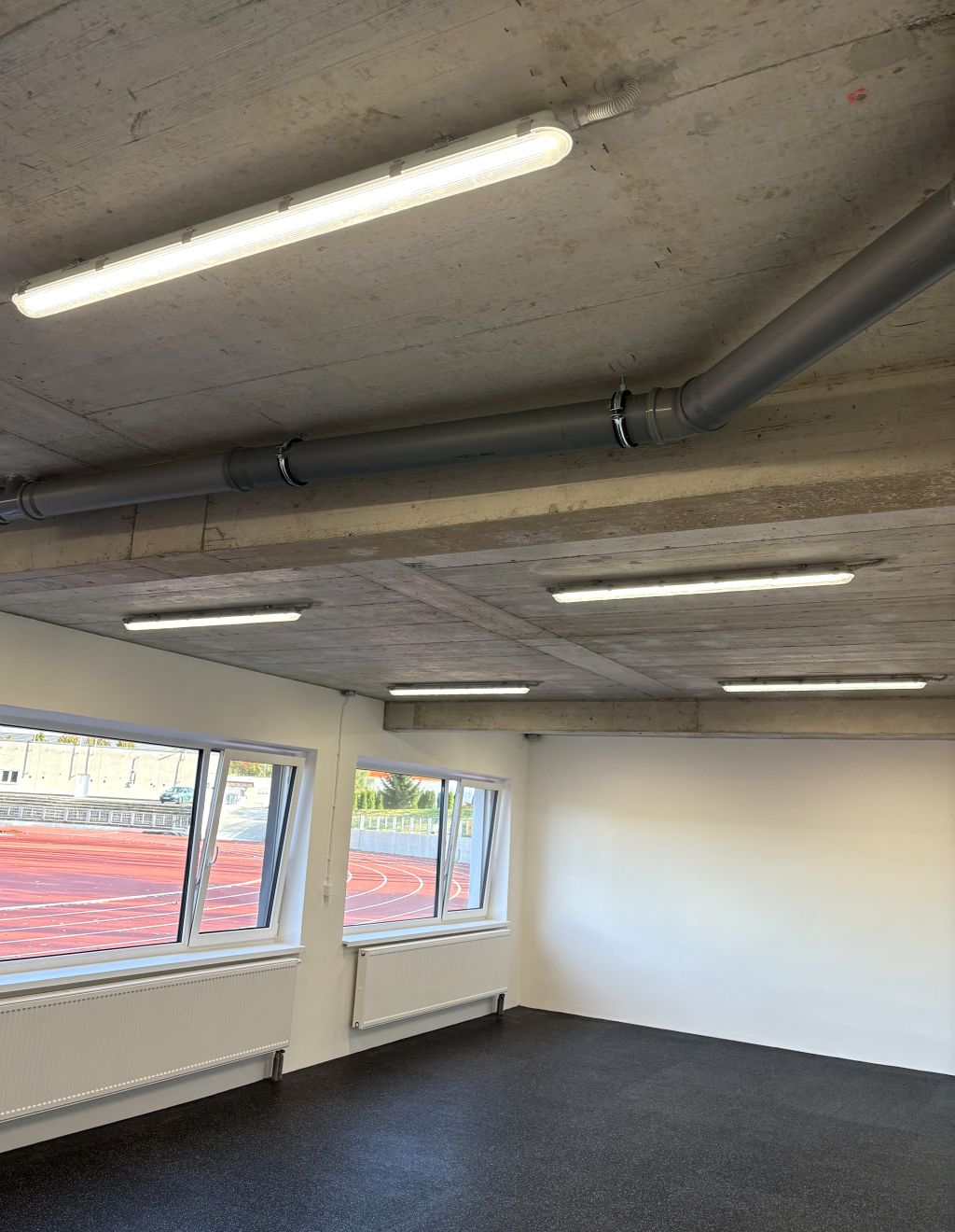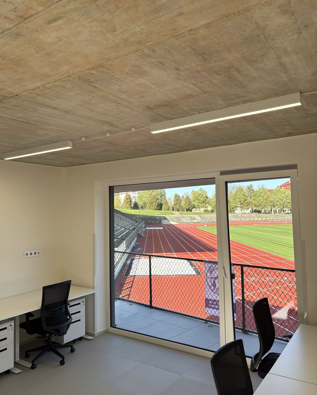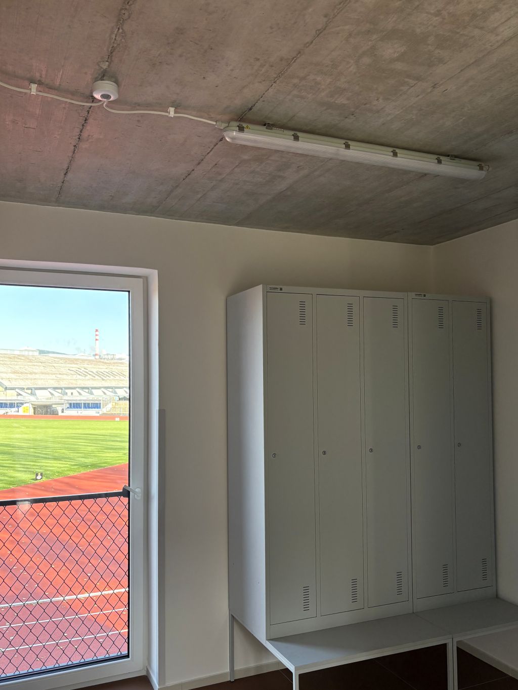 Na atletickom štadióne v Liberci sme sa postarali o kompletné osvetlenie nového zázemia. Keďže športovci musia vidieť nielen na trať, ale aj do tašky v šatni, realizovali sme moderné LED osvetlenie všetkých priestorov – od šatní, spŕch a posilňovne až po vonkajšie osvetlenie budovy.