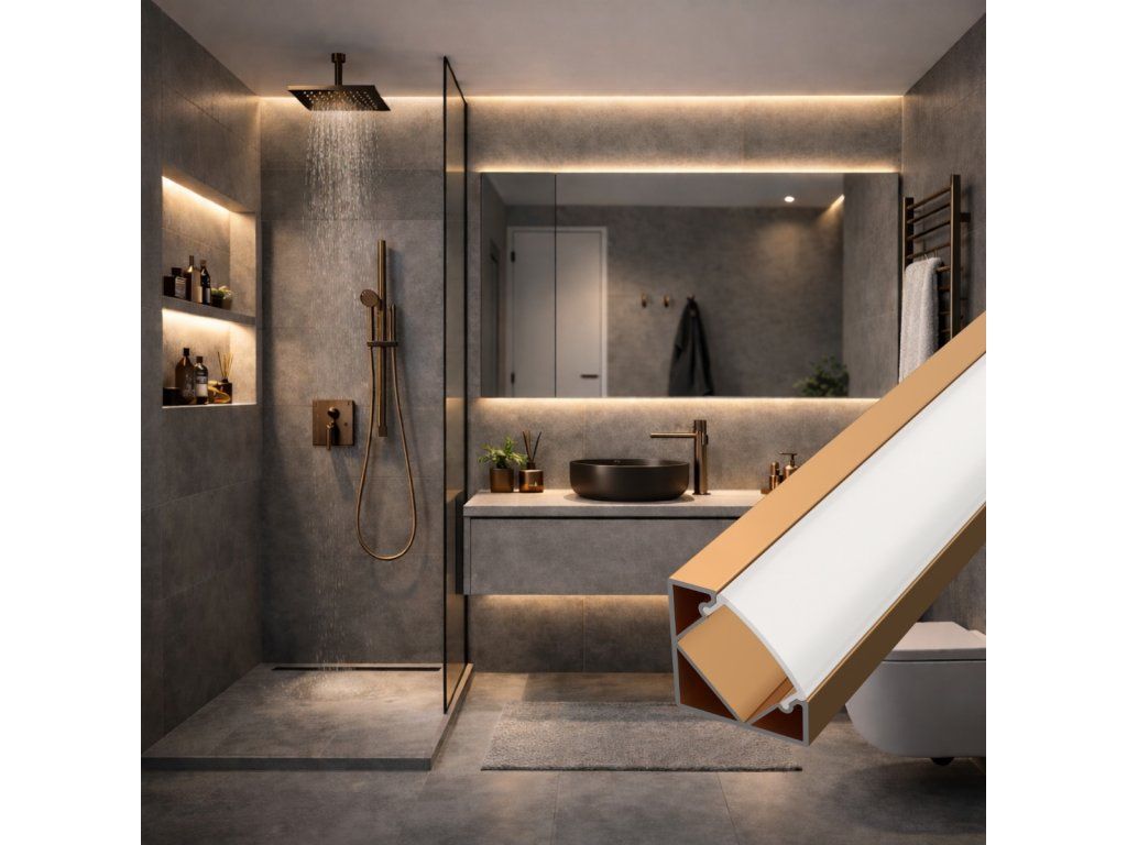 Hliníkový rohový profil v elegantnom bronzovom prevedení slúži ako chladič pre LED pásik a zároveň ako výrazný dizajnový prvok, ktorý dobre zapadne do interiérov s drevom, kameňom alebo teplými kovovými doplnkami. Vďaka svojmu odtieňu nepôsobí technicky, ale prirodzene dopĺňa moderný aj industriálny priestor.