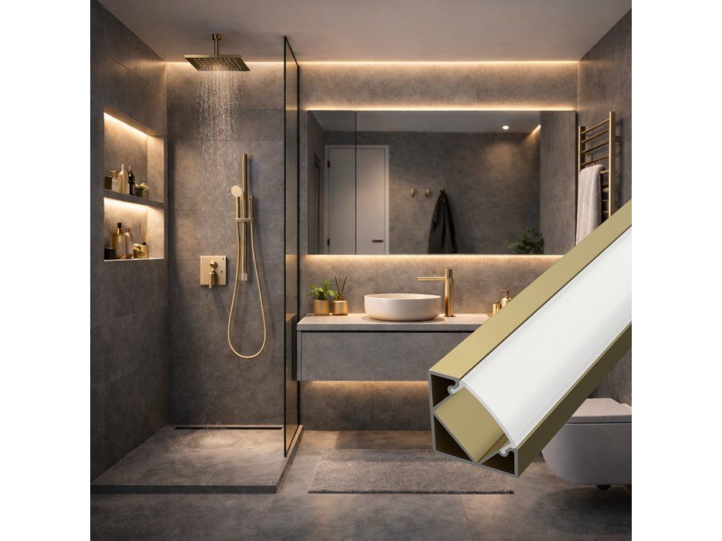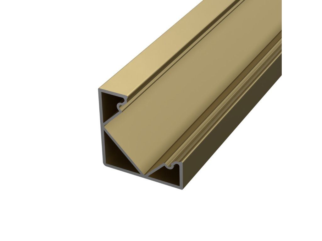 Hliníkový rohový profil v elegantnom champagne prevedení slúži ako chladič pre LED pásik a zároveň ako dizajnový prvok, ktorý sa hodí do moderných aj luxusne ladených interiérov. Jemný kovový odtieň pôsobí čisto a nadčasovo a dobre ladí so svetlými materiálmi, sklom alebo kovovými detailmi.