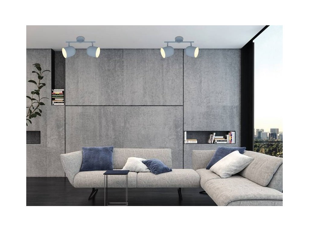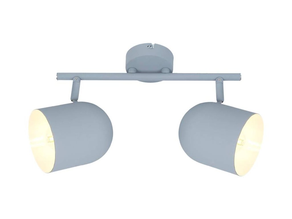 Stropné LED svietidlo s päticami 2x E27 s výkonom max. 40W. Rozmer tohto svietidla je 380x180x100mm. Svietidlo je vhodné do moderného interiéru. Výhodou je možnosť nastavenia sklonu tienidla vertikálne aj horizontálne. Svietidlo je vyrobené z kovu šedej matnej farby.