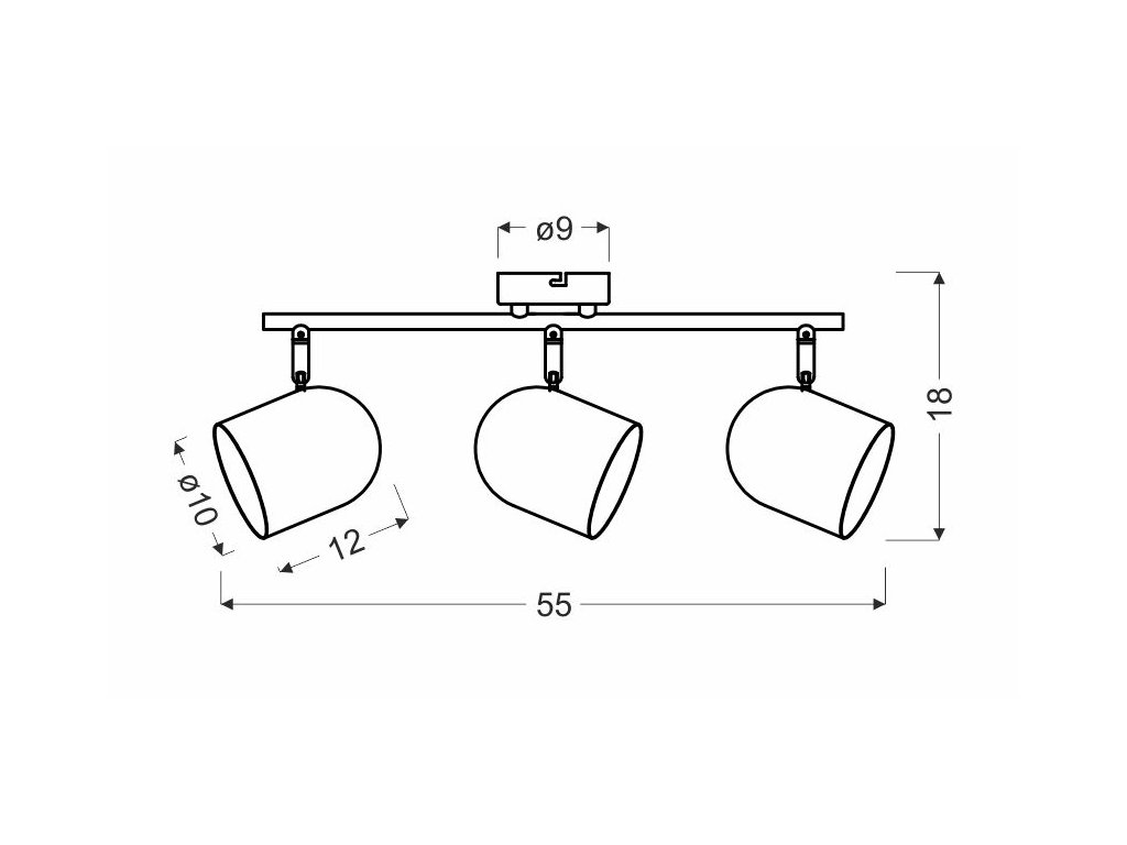 Stropné LED svietidlo s päticami 3x E27 s výkonom max. 40W. Rozmer tohto svietidla je 550x180x100mm. Svietidlo je vhodné do moderného interiéru. Výhodou je možnosť nastavenia sklonu tienidla vertikálne aj horizontálne. Svietidlo je vyrobené z kovu šedej matnej farby.