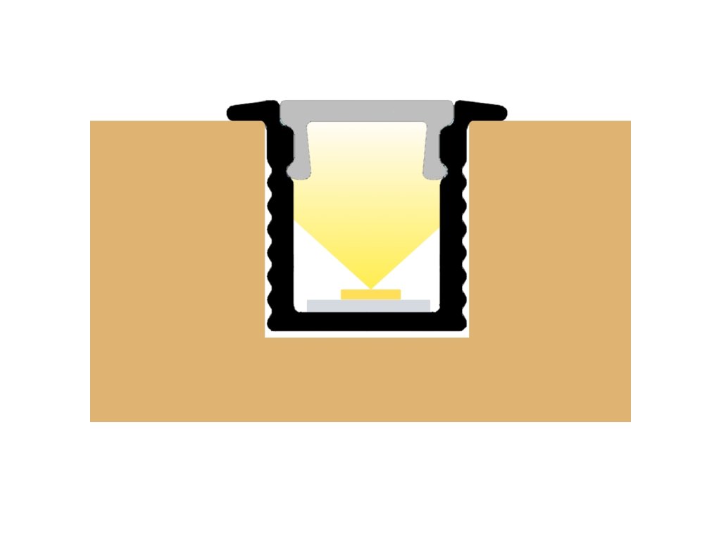 Inštalácia prebieha vyfrézovaním drážky do požadovaného povrchu, do ktorej sa profil následne vlepuje. Výsledkom je dokonale čistý a zarovnaný vzhľad bez viditeľných montážnych prvkov, kedy svetlo prirodzene splýva s povrchom a vytvára decentné a moderné podsvietenie.