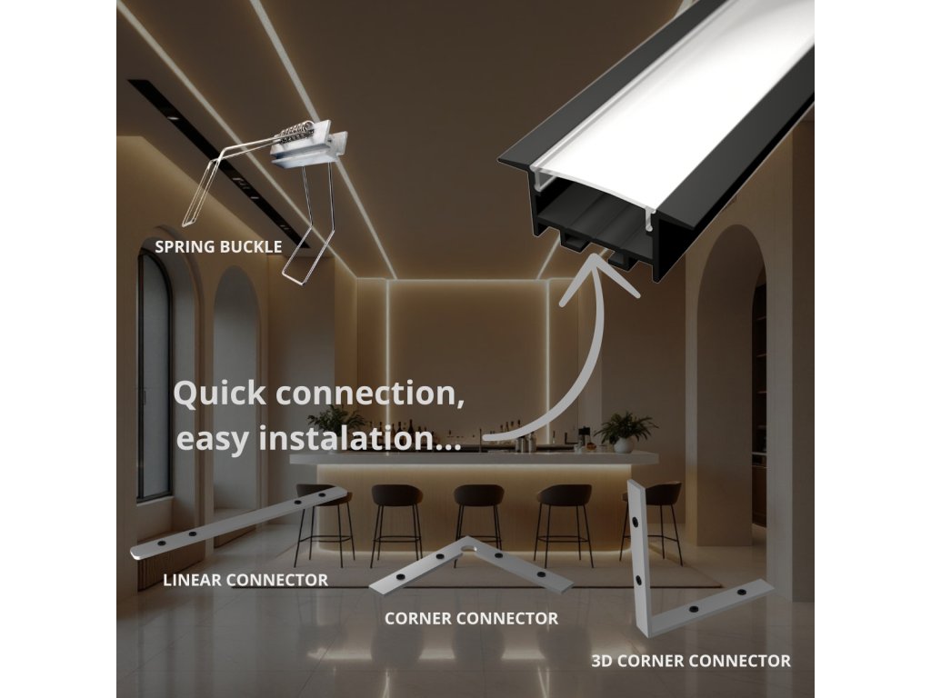 Tento vstavaný hliníkový profil alebo lišta slúži nielen ako chladič pre LED pásik, ale aj ako dizajnový prvok do Vašej domácnosti alebo ako doplnok nábytku. Profil možno pripevniť k stene alebo inému podkladu pomocou držiakov, nalepiť alebo priskrutkovať.