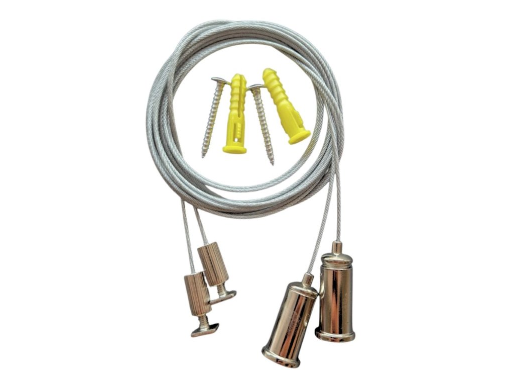 Sada obsahuje 2ks laniek, skrutky a hmoždinky. Nastaviteľná výška závesu. Lanko je dlhé 1,5 m.