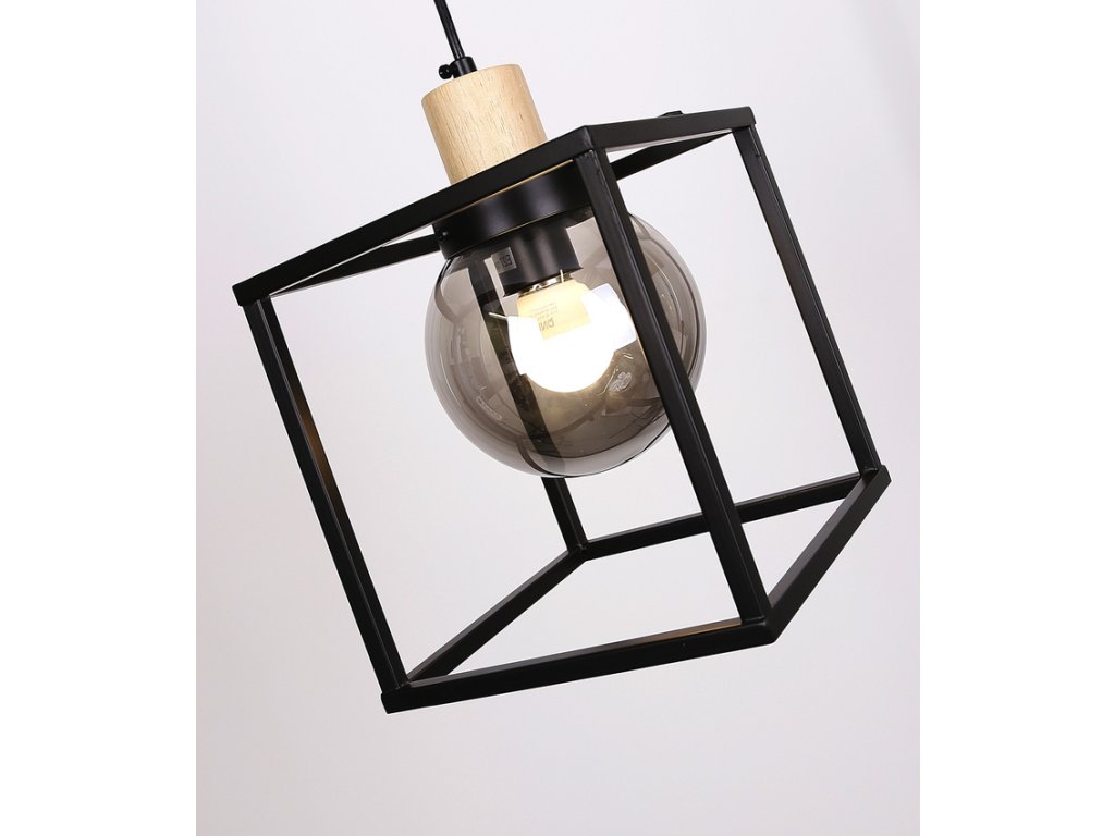 Závesný LED luster s päticou E27 pre žiarovku s výkonom max. 40W. Rozmer tohto svietidla je 1000x190x190mm. Tento luster rozžiari Vami vybranú miestnosť - ideálna je napríklad pre hotely, reštaurácie, ale pokojne si ho môžete umiestniť do svojej obývačky alebo jedálne. Svojím dizajnom perfektne zapadne do rustikálneho a industrialného štýlu. Svietidlo je vyrobené z kovu čiernej farby s drevenými prvkami. Tienidlo s priemerom 130mm je vyrobené zo skla dymového odtieňa. Vďaka nastaviteľnej výške kábla je možné svietidlo prispôsobiť rôznym typom interiéru.