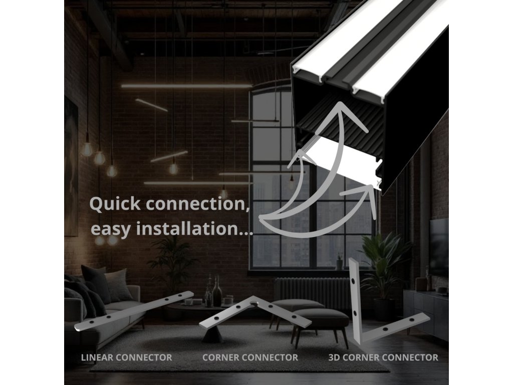 Alternatívne je možné profil upevniť do sadrokartónu pomocou pružinových úchytiek a pre väčšie projekty je možné profily spájať rovnými, rohovými aj 3D konektormi.