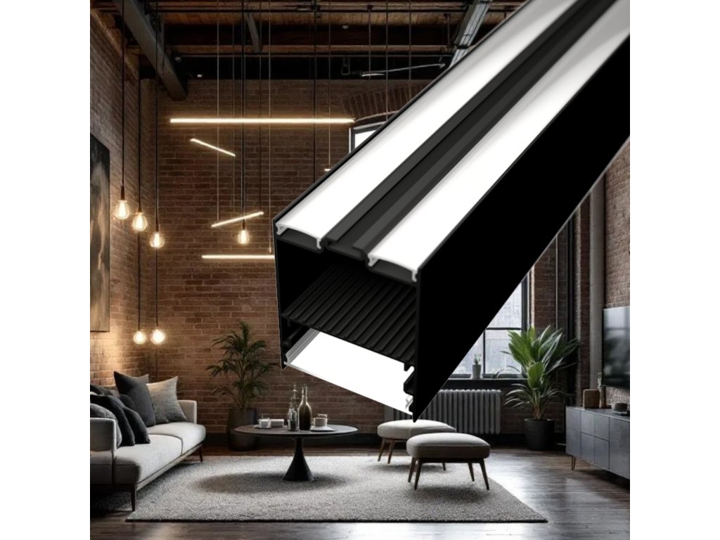 Profil je ideálny na vytvorenie elegantného zaveseného osvetlenia s využitím 1,5metrových závesných sád. Tieto sady sú k dispozícii v troch farebných variantoch – striebornej, čiernej a bielej – čo uľahčuje ich zladenie s interiérovým dizajnom. Zavesením profilu pomocou týchto sád dosiahnete moderné lineárne svietidlo s „plávajúcim“ efektom, ktoré je ideálne pre kancelárie, showroomy, kuchyne a obývacie izby. Tento spôsob montáže umožňuje flexibilné nastavenie výšky a zaisťuje čistý a profesionálny vzhľad osvetlenia.