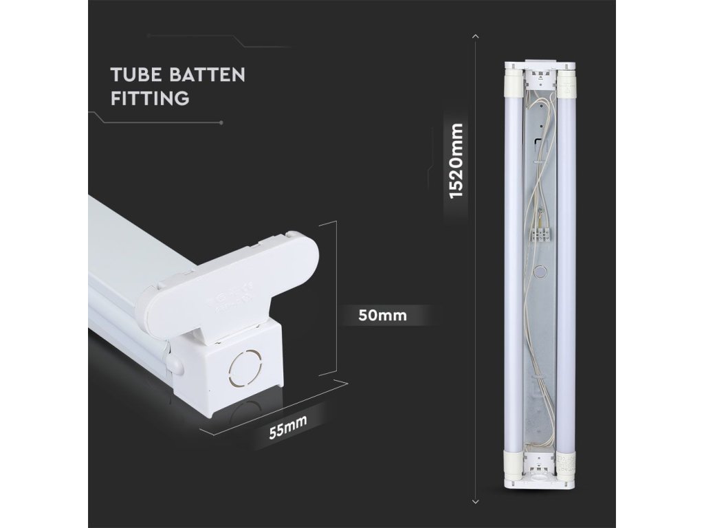 Súprava spája dve úsporné LED trubice 150 cm s výkonom 20 W a žiarivkové teleso s krytím IP20, takže predstavuje cenovo dostupné riešenie pre osvetlenie garáží, dielní, technických miestností aj ďalších interiérov, kde nie je vyžadovaná zvýšená odolnosť voči vlhkosti alebo prachu. LED trubice nahrádzajú bežné fluorescenčné žiarivky, spotrebujú približne o polovicu menej energie a rozsvecujú sa okamžite na plný výkon bez blikania a hučania. V kombinácii s telesom navrhnutým priamo pre LED osvetlenie sa môžete spoľahnúť na stabilnú a úspornú prevádzku pri každodennom používaní.