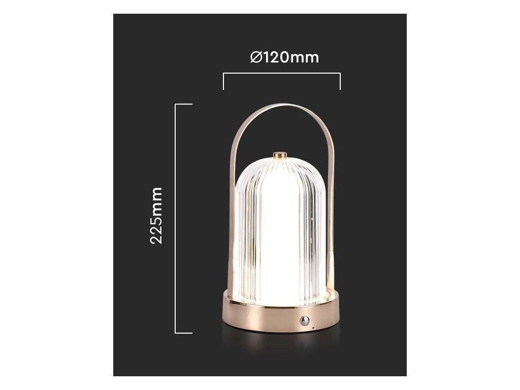 LED nabíjacia stolová lampička s výkonom 1W je skvelým doplnkom Vášho stola či už v domácnosti alebo v kancelárii. Táto elegantná lampička v zlatom prevedení s rozmermi ø120 x 225mm je vyrobená z pevného a odolného kovu.
