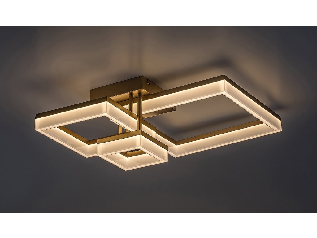 Stropné svietidlo Amilia zaujme elegantným a moderným dizajnom, ktorý sa stane výrazným prvkom každého súčasného interiéru. Konštrukcia svietidla je tvorená tromi vzájomne prepojenými hranatými rámami rôznych veľkostí, ktoré vytvárajú geometricky čistú a zároveň dynamickú kompozíciu. Pravouhlé línie pôsobia moderne a nadčasovo a výborne zapadnú do minimalisticky aj luxusne ladených interiérov. Kovové telo v zlatom vyhotovení dodáva svietidlu elegantný a reprezentatívny vzhľad, ktorý dopĺňa biele plastové tienidlo zabezpečujúce rovnomerné rozptýlenie svetla bez oslnenia. Vďaka svojmu vyhotoveniu je svietidlo ideálnou voľbou do obývacej izby, jedálne alebo spálne, kde sa stane nielen zdrojom svetla, ale aj výrazným dizajnovým prvkom.