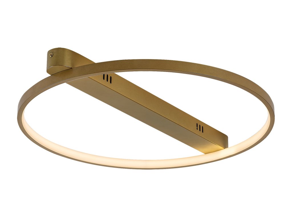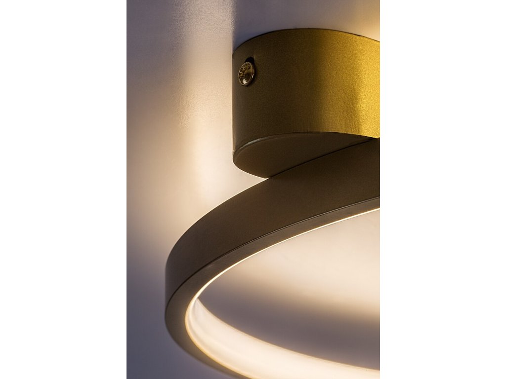 Stropné svietidlo Beliza v zlatom vyhotovení zaujme elegantným moderným dizajnom v podobe jemného kruhu, ktorý pôsobí luxusne a zároveň čisto. Kovové telo v teplom zlatom odtieni dodáva interiéru sofistikovaný akcent a v kombinácii s bielym silikónovým tienidlom umiestneným po vnútornom obvode kruhu vytvára príjemné, rovnomerne rozptýlené svetlo bez oslnenia. Predĺžená dekoratívna stropná základňa so zaoblenými koncami prispieva k harmonickému vzhľadu a elegantnému uchyteniu k stropu.